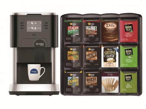 The coffee machine offers fresh coffee that is full of flavor.